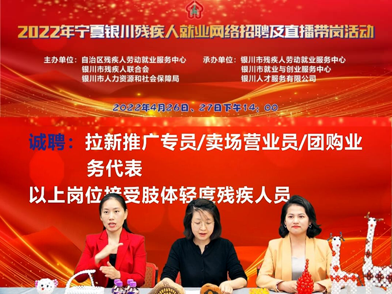 为有就业需求的残疾人和用人单位“搭桥牵线”,帮扶更多残疾人实现就业,4月26日,2022年宁夏银川残疾人就业援助直播带岗及网络招聘会正式启动。